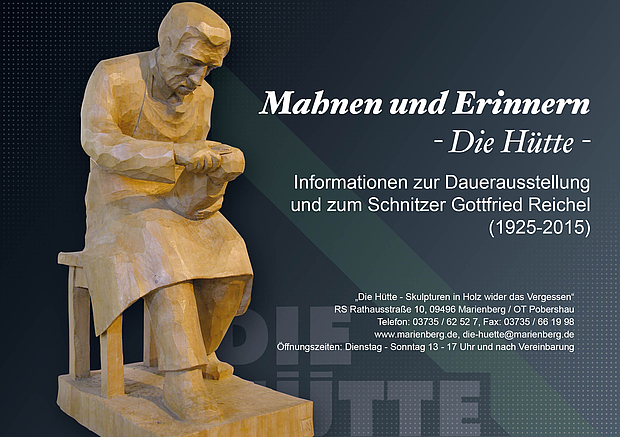 Die Dauerausstellung "Skulpturen in Holz wider das Vergessen" wurde im Dezember 1997 eröffnet. Der größte Teil der geschnitzten Werke Gottfried Reichels werden seitdem in der "HÜTTE" gezeigt. Als Wanderausstellung, die stetig wuchs, sind alle Figuren zu sehen, die nach 1997 entstanden. Für die Wanderausstellung, welche in regionalen wie überregionalen Kirchgemeinden zu sehen waren und sind, erstellte Gottfried Reichel einen exakten Aufbauplan mit detaillierten Informationen und sogar das fachgerechte Verpackungsmaterial. Bis zum Jahr 2009 schnitzte er weitere 70 Figuren des biblischen Themenkreises aber auch eine Szene aus dem Konzentrationslager Auschwitz.